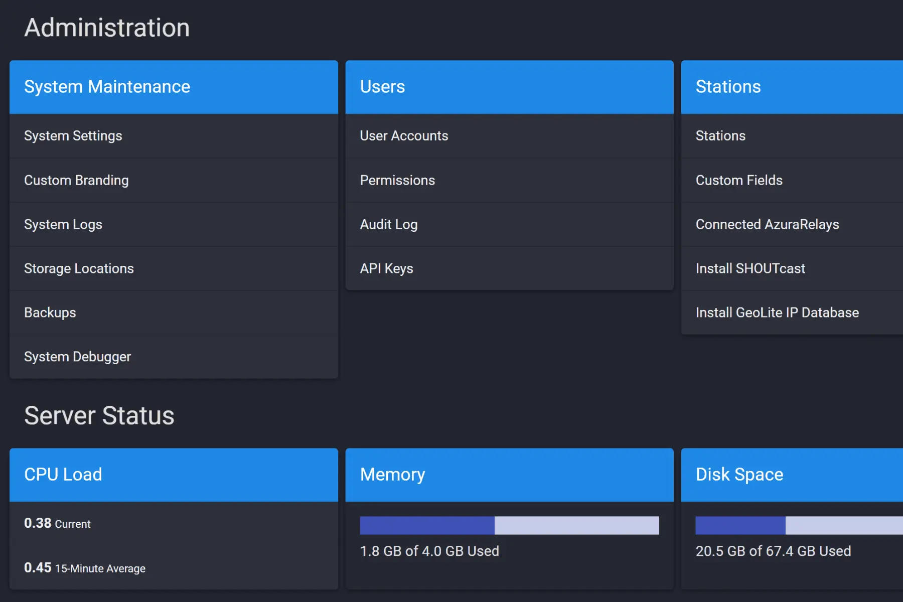 AzuraCast is a free, open-source, self-hosted suite that installs everything needed to run an internet radio station. You manage stations, media, playlists, live inputs, and analytics from a web interface, making it a “web radio station in a box.”